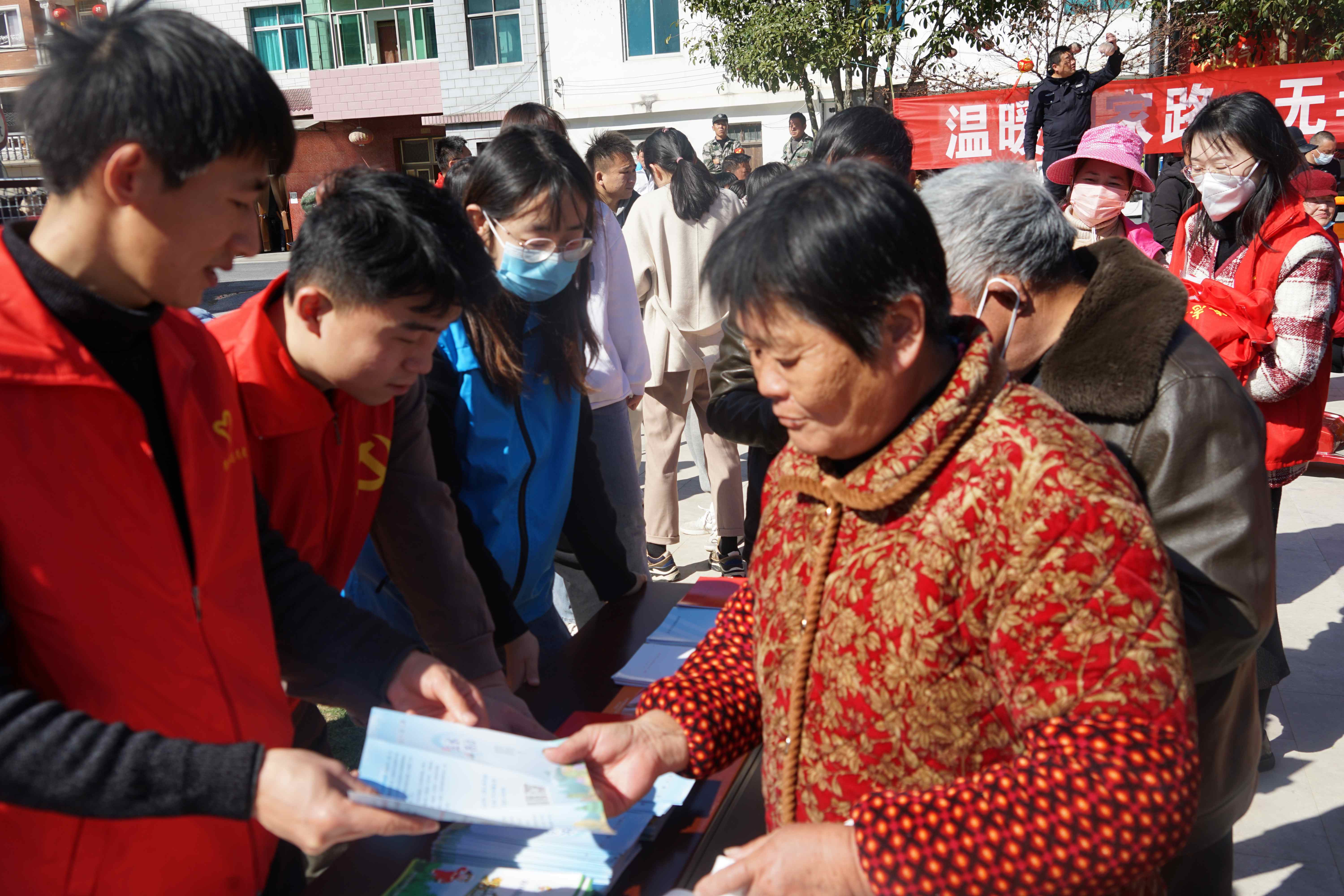 活動現(xiàn)場,舞臺上戲曲、音樂表演與猜燈謎活動精彩紛呈。舞臺下,清涼峰鎮(zhèn)政府工作人員、臨時黨支部黨員和林竹村黨群服務(wù)中心成員組成志愿者服務(wù)隊(duì),為大家普及禁毒知識和發(fā)放森林防火手冊,廣場上洋溢著一片歡聲笑語。活動結(jié)束后,志愿者們?yōu)榱种翊灏贇q老人送去熱氣騰騰的煮湯圓。