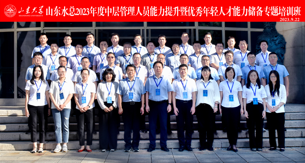 為進(jìn)一步提升公司中層管理人員管理能力和優(yōu)秀年輕人才的綜合素質(zhì),打造高素質(zhì)專業(yè)干部隊(duì)伍,9月22日—23日,山東水總有限公司聯(lián)合山東大學(xué)在山東大學(xué)中心校區(qū)舉辦2023年度第一期中層管理人員能力提升暨優(yōu)秀年輕人才能力儲(chǔ)備專題培訓(xùn)班。公司中層管理人員、優(yōu)秀年輕后備人才共50余人參加培訓(xùn)。