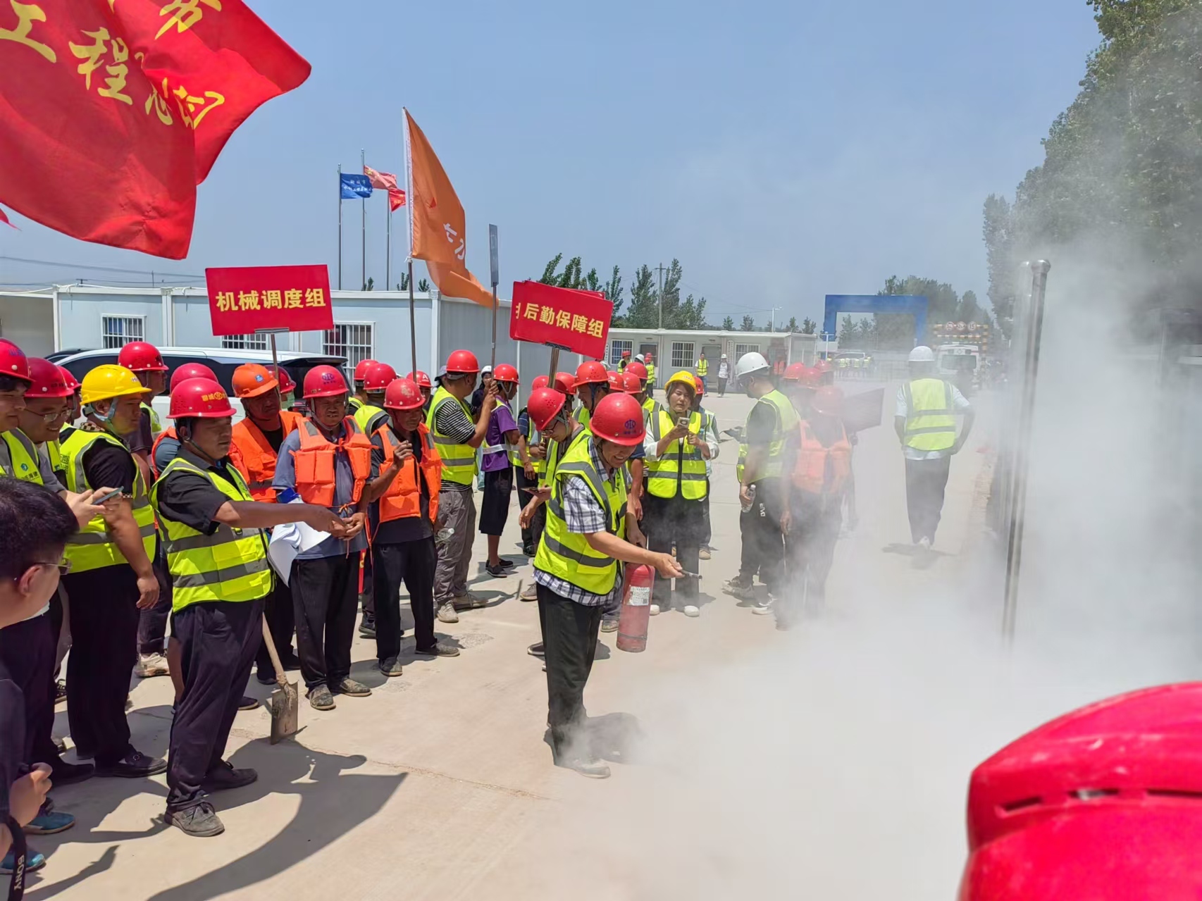 演練模擬區(qū)域性強降雨造成位山灌區(qū)三干渠水位持續(xù)上漲,堤防出現(xiàn)坍塌、決口等險情,項目部迅速啟動應(yīng)急預(yù)案,集結(jié)人員、器械、物資趕赴現(xiàn)場,按照分工,各司其職,展開搶險作業(yè),有效控制了險情擴散;模擬了施工現(xiàn)場突發(fā)火情場景,搶險人員迅速利用滅火器等器材對火源進行撲救,及時進行人員疏散,有效控制了火勢的蔓延和損害的進一步擴大。整個演練過程進展順利,各小組配合默契、有條不紊,參與人員有序分工、通力合作,檢驗了應(yīng)急預(yù)案和措施可行性,積累了實戰(zhàn)經(jīng)驗,切實增強各參建單位應(yīng)急避險意識,提高應(yīng)急響應(yīng)能力,達到預(yù)期效果。