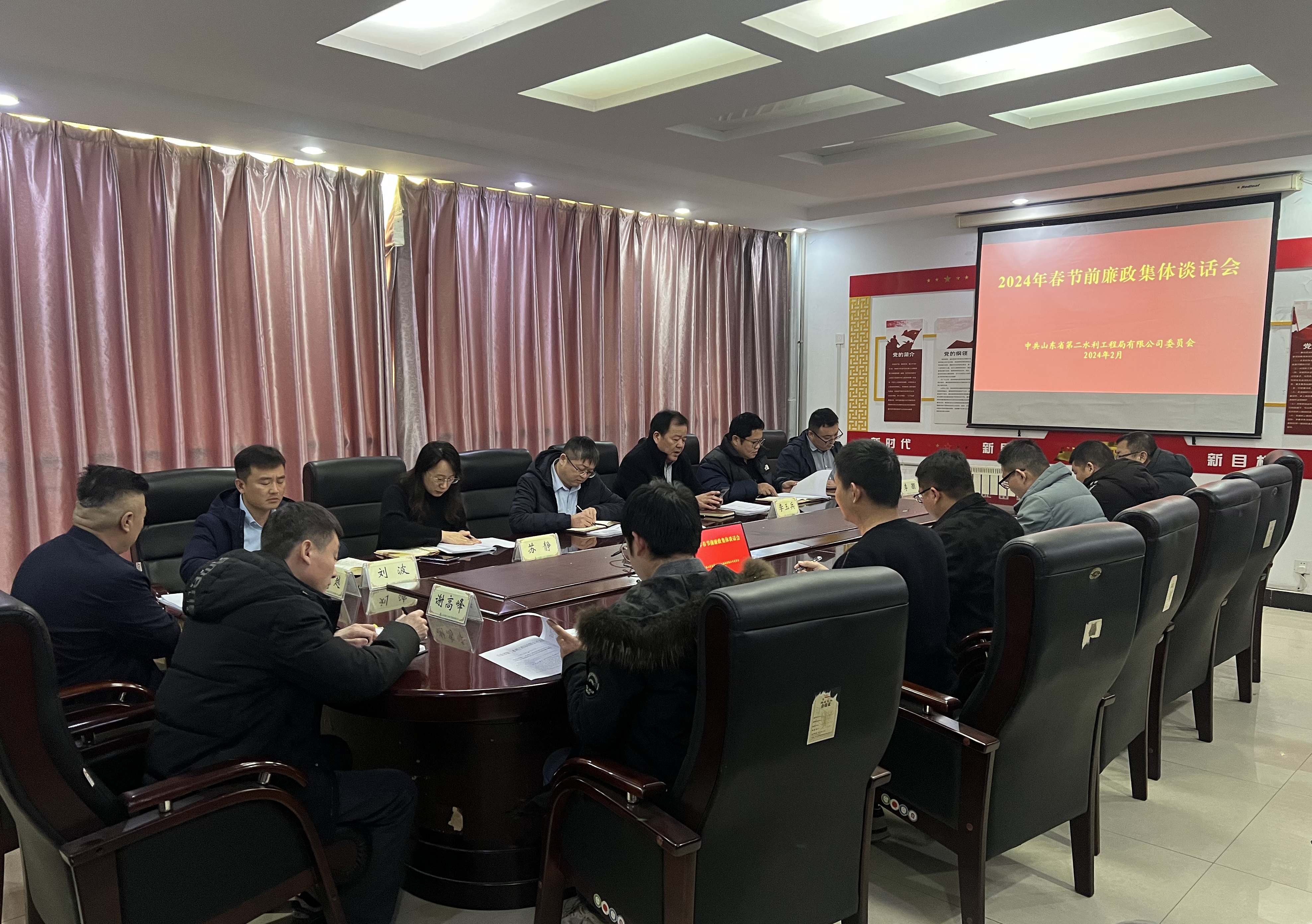 2月2日下午,二局有限公司黨委召開2024年春節(jié)前廉政集體談話會議。公司領導班子成員、各部室負責人和各項目負責人參加,二局有限公司黨委書記、總經理王傳波主持會議并就近期重點工作進行安排部署。