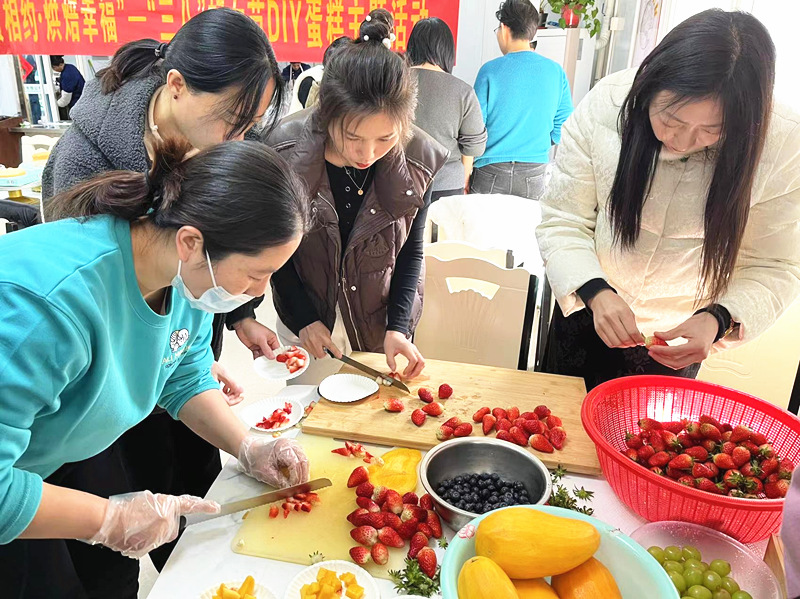 活動中,特邀老師對烘焙工具的使用、食材的配比、制作方法等進行了簡單的講解,現(xiàn)場進行演示教學,講授家用烘焙小常識和技巧。女職工們利用現(xiàn)有食材,體驗奶油打發(fā)、涂抹、裱花手法等蛋糕制作過程,結合自己的審美創(chuàng)意精心設計制作蛋糕,彼此交流烘焙學習心得、分享制作成果。大家其樂融融,收獲滿滿,留下了美好的回憶。