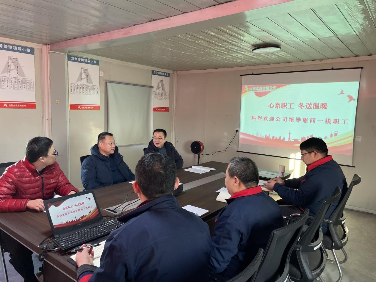 王坤林向一線職工表達(dá)了深切問(wèn)候并發(fā)放慰問(wèn)品,對(duì)大家不畏嚴(yán)寒、堅(jiān)守崗位的精神給予了高度評(píng)價(jià)。隨后查看了職工生活環(huán)境及項(xiàng)目施工現(xiàn)場(chǎng),聽取了項(xiàng)目建設(shè)情況匯報(bào)。會(huì)上,王坤林鼓勵(lì)員工繼續(xù)發(fā)揚(yáng)團(tuán)結(jié)奮斗、勇于擔(dān)當(dāng)?shù)墓ぷ骶?,為?xiàng)目平穩(wěn)推進(jìn)貢獻(xiàn)自己的力量。