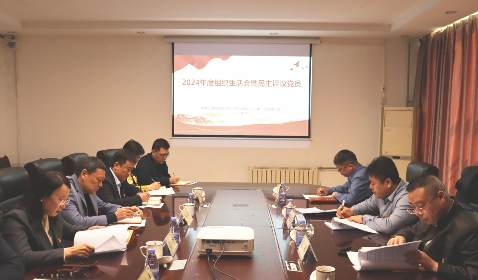 3月18日,二局有限公司第一黨支部召開2024年度組織生活會暨民主評議黨員會議。公司黨委書記、董事長裴文晶,綜合辦公室(黨委辦公室)主任張輝到會指導。黨支部書記王鵬主持會議。